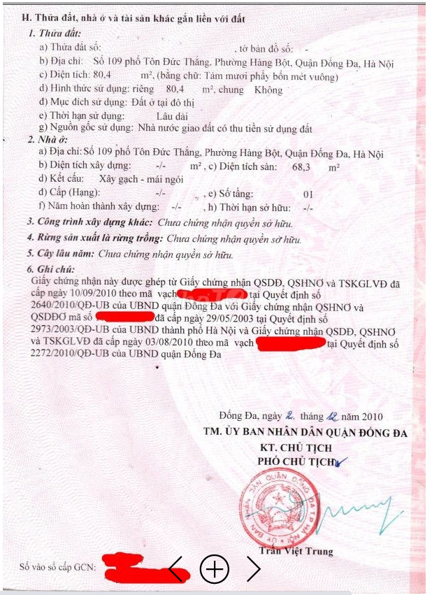 Chính chủ cần bán nhà 2 mặt tiền số 109 Tôn Đức Thắng, Phường Hàng Bột, Quận Đống Đa, Hà Nội