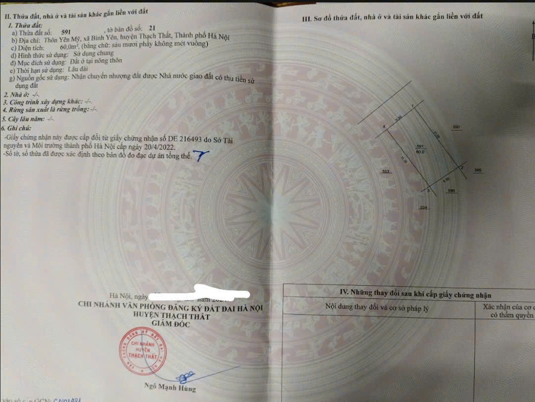 Gia đình em có 1 lô đất 60m2 ngay thôn Yên Mỹ, Xã Bình Yên, Huyện Thạch Thất, Hà Nội